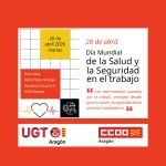 UGT Aragón y CCOO Aragón: Jornada conjunta el 28 de abril «Día Mundial de la Seguridad y la Salud en el trabajo»